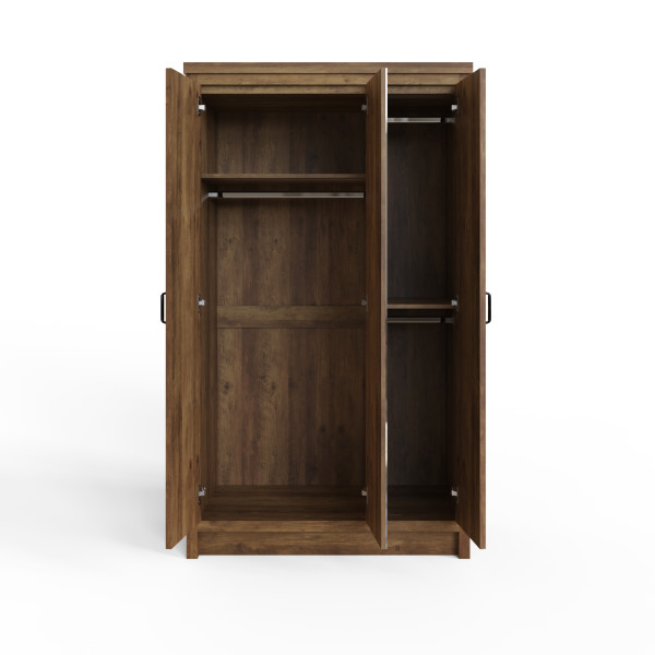 Bring character and practicality to your bedroom with the Boston 3 Door Mirrored Wardrobe. With its striking panelled doors, matt black handles, and full-length centre mirror, this wardrobe balances rustic warmth with a modern industrial edge.Crafted in a textured wood-effect finish, the Boston wardrobe is available in Knotty Oak or Grey, making it easy to match with both contemporary and traditional spaces. Behind the three doors, you’ll find a spacious interior featuring a hanging rail and internal shelving—perfect for organising clothing, shoes, and accessories.