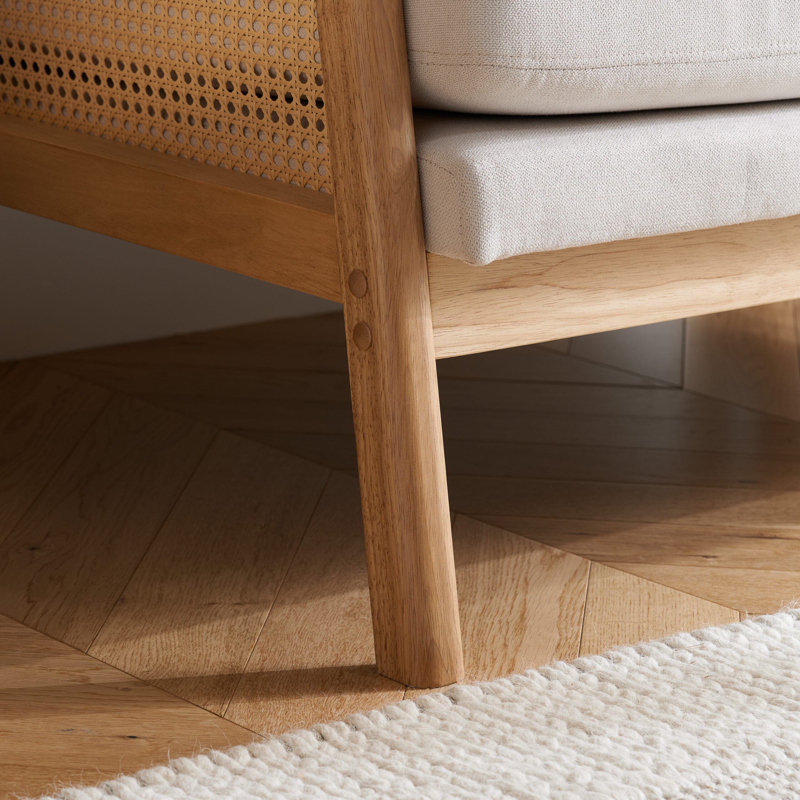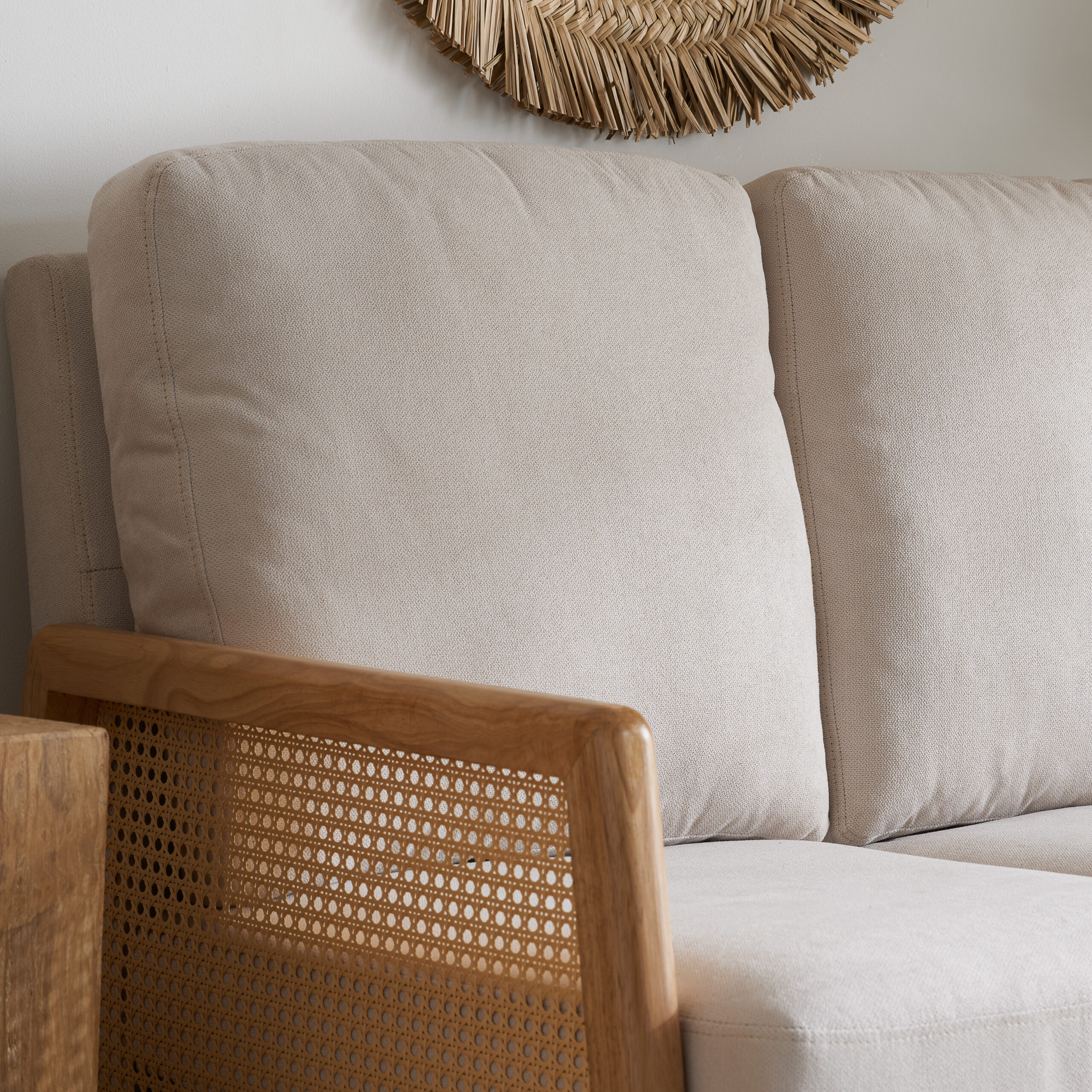 Each piece in the Ida Range boasts a robust frame, expertly crafted to ensure longevity and resilience. The sides of each sofa are adorned with finely woven rattan, lending a breezy, organic feel that contrasts beautifully with the sleek, modern lines of the design.