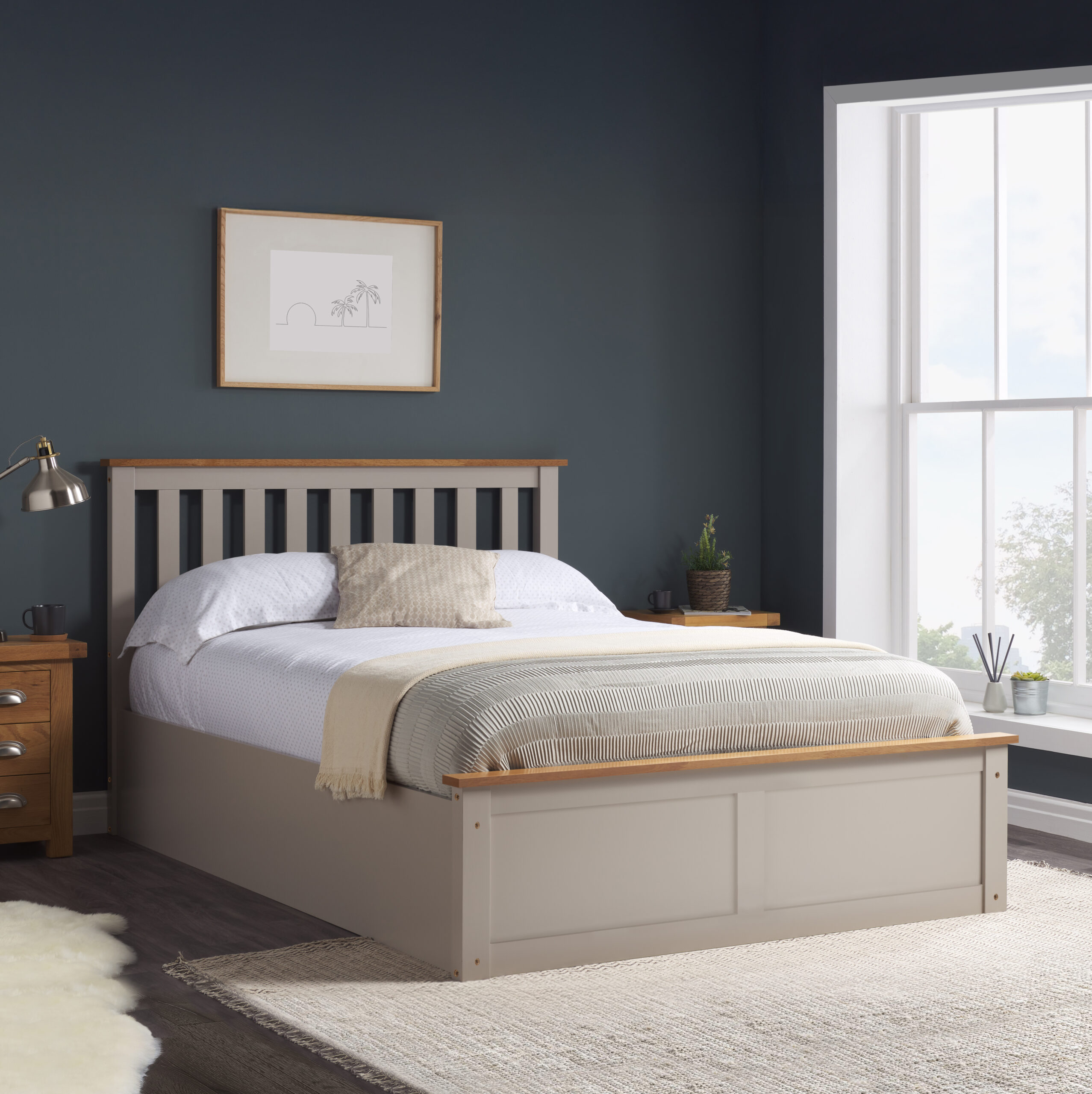 One of the highest quality finishes in the range, the Phoenix wooden Ottoman bed provides both class and practicality, with an opening base that provides plenty of storage. The bed is available in pearl grey, stone grey, oak or white.