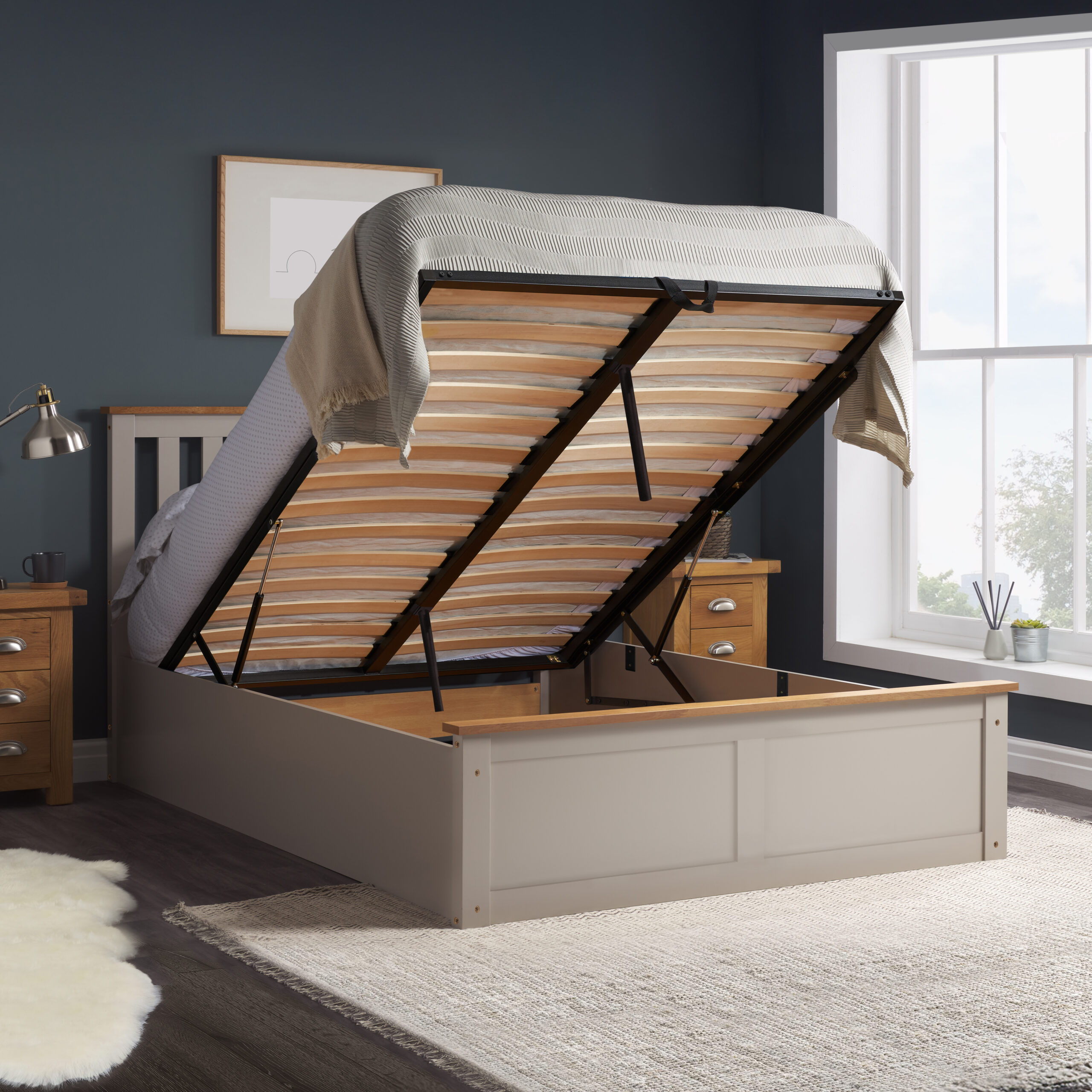 Please note the mattress needs to be on the bed for the pistons to work. Birlea beds are only suitable for a UK standard size mattress and the recommended maximum mattress height is 23cm.