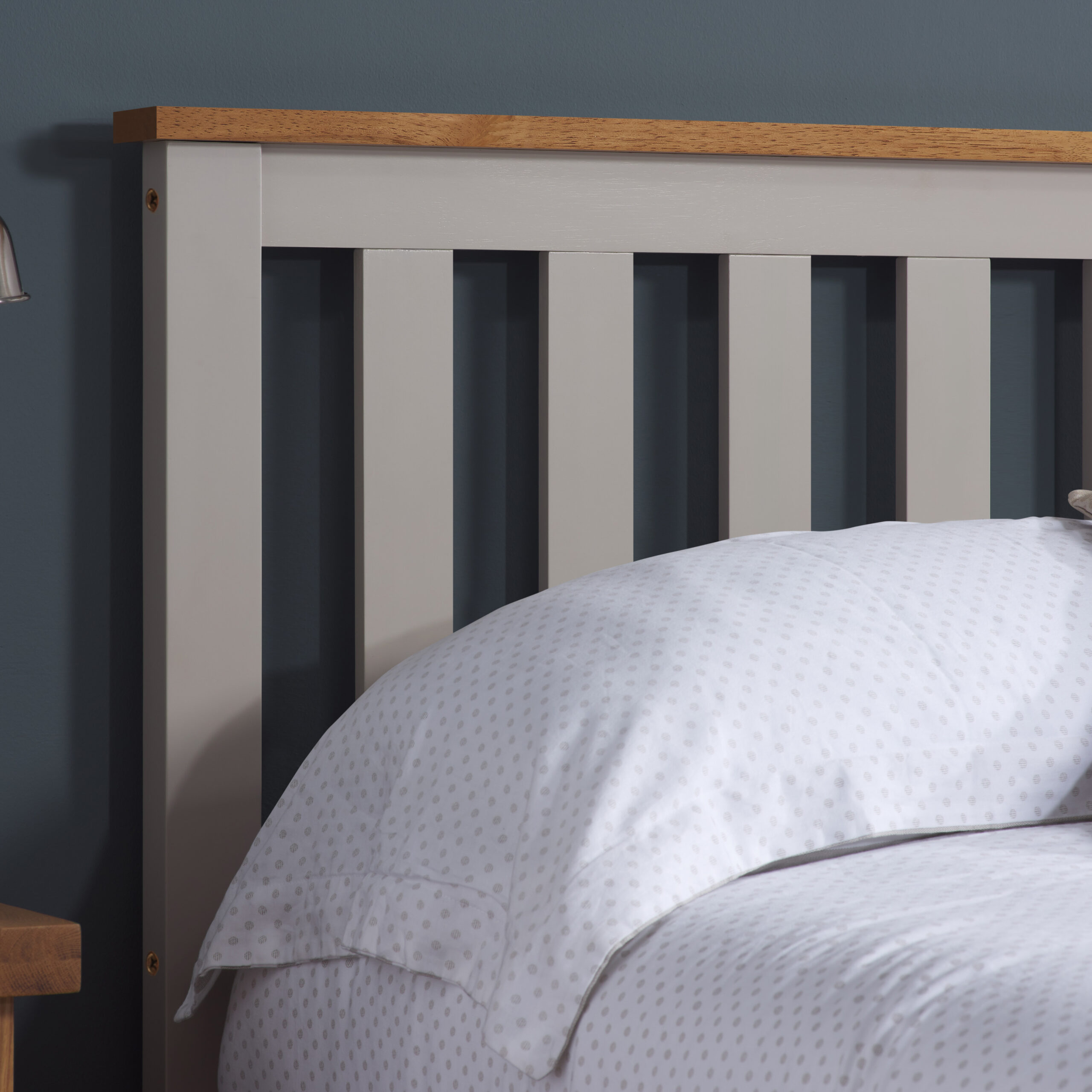 Constructed from solid rubberwood, the oak option has MDF veneered side rails whereas the white option features MDF Melamine side rails.